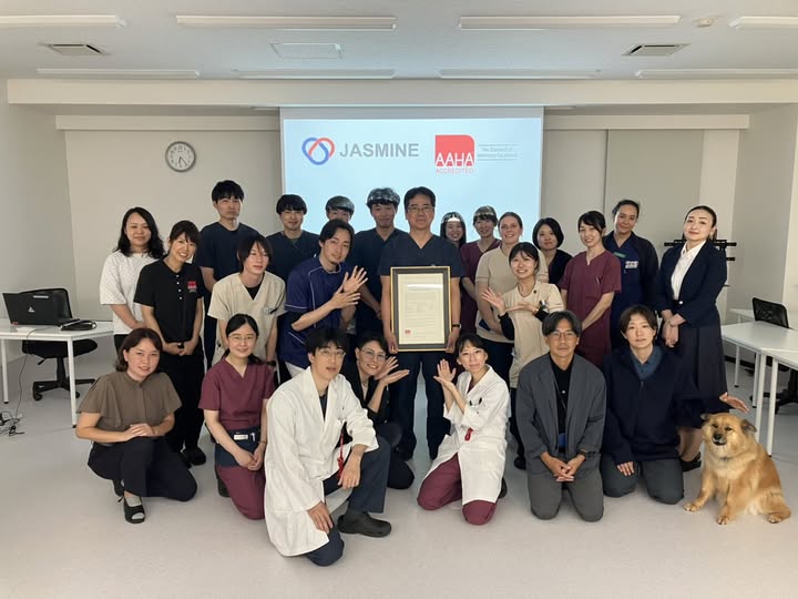 AAHA accreditation is awarded to veterinary hospitals that meet approximately 900 standards covering areas such as patient care, facilities and equipment, as well as hospital management and operations. As part of the reaccreditation process, JASMINE underwent a comprehensive evaluation that assessed a broader range of standards than those applied during its initial accreditation. This result confirms that the hospital has continued to maintain a high level of quality in both medical care and hospital management.